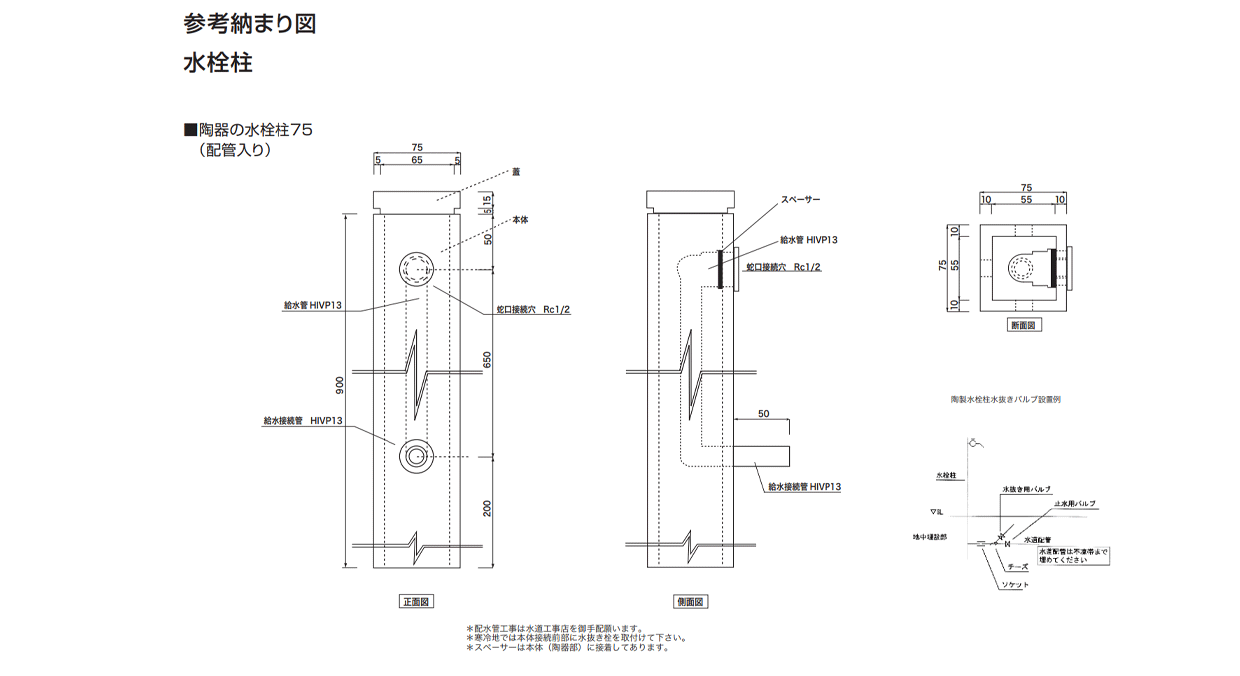 陶器の水栓柱75 (補助蛇口仕様) 仕様